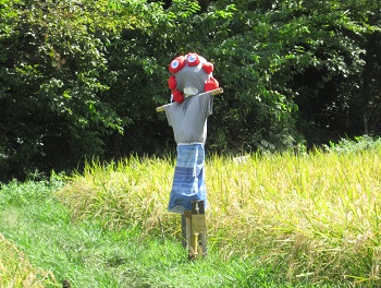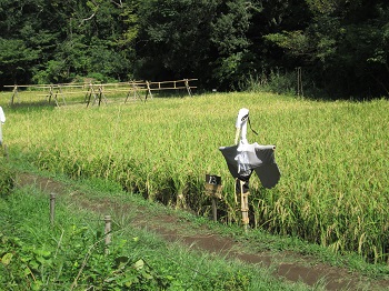 公園谷戸の田んぼ 黄金色の稲穂 | 案山子「オラフ」 | |