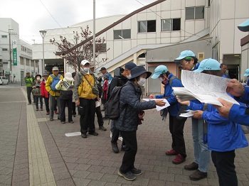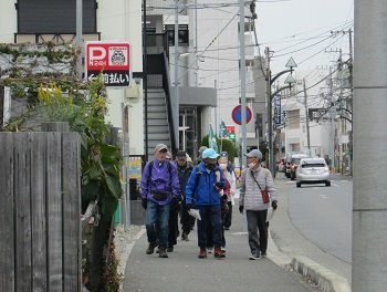 | 場所変更して長後駅前で受付 | 1班の出発 |