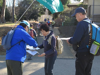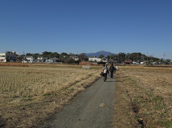 | ウッ! ヴルヴル、オー寒・・・。今シーズン一番の冷え込みか? 今年最後の例会は雲一つない快晴、ピーンと引き締まった澄んだ空気に包まれ絶好のウォーキング日和となった。 恒例の納めのウォークは1年の締めくくりに寒川神社に参拝する。 好天に恵まれ、富士山を正面に見ながら歩けるコースを考えるとワクワクする。 今年のコースはチーフリーダーの工夫がみられる。北警察署、いすゞ自動車工場、イトーヨーカドー、慶応大学前を西へ西へ、さらに真っすぐ西に進み内戻しの交差点から南に方角を変え、茅ヶ崎里山公園にCP(チェックポイント)を置く休憩場所でもある。この先は西に方角を変え、農家・田畑・寺院の間を進み寒川神社を目指す。今までとは少し違った小出川を挟んで北側と南側の富士山が良く見える欲張った生活道の匂いがするコースである。 コース半ば慶応大学を過ぎて緩い坂を上りきると富士山の雄姿が眼前に突然出現した。参加者の皆さんから歓声があがり盛んにシャッターを切る姿が多くなる、このコースのハイライトである。茅ヶ崎里山公園まで富士の雄姿を楽しむことが出来る。のどかな里山風景が広がり気持ちも足取りも軽やかになった。参加者の皆さん、満足のウォーキングを楽しめたのではないでしょうか。お疲れ様! 今年1年間沢山の皆さんに例会に参加戴き、誠にありがとう御座いました。 (阪本 茂義) |