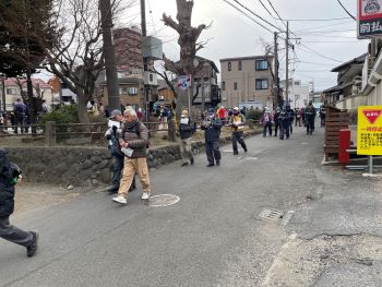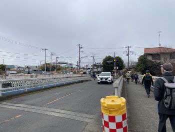 昨日まで続いた小春日和から一転して今季一番の冷え込みとなった今日、最高気温は6℃との予報でした。どうなることかと心配の向きもありましたが、スタートの長後公園に向かうと、十分な防寒対策を施した歩気(やる気にかけて私が作った新語で「あるき」と読みます)旺盛な参加者がいつもと変わらず大勢待機しておられ、受付を済ませて続々と出発して行く様子もふだんと変わりがないように思いました。ただ、皆さんの歩く速度がいつもより速いような気がしたのが寒さのせいなのかもしれません。