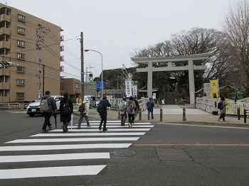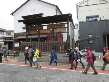 | 集合場所は藤沢駅北口近くの若尾山公園。立春を過ぎても、天気予報が今シーズン最寒というので、防寒着を重ねて参加した。公園では風が冷たく、雪が舞っている。土曜日で他に人の姿もない。 そんな中でも受付が始まる頃の参加者は150人を超えていた。 9時 受付開始。街なかから境川沿いに出る。流れの砂州にカワウが100羽ほど休んでいる。この寒気の中で、彼らはじっとしてなにを思っているのか。「奥田堰碑」に出る。奥田堰は大正〜昭和にかけて利用された農業用取水堰の跡で、いまは小さな橋が架かっている。舩玉神社を過ぎると藤沢橋交差点に出た。現在の藤沢橋は1992年の竣工である。 ふじさわ宿交流館(高札場)の前から遊行寺橋(大鋸橋)を渡って藤沢宿の通りにでる。これが昔の東海道だ。箱根駅伝も現在のルートができる前は、遊行寺坂を下って、このルートで宿場へ抜けていた。 本町に入り常光寺(七福神・福禄寿)から済美館へ。案内文によれば昔の済美館は昭和17年、武道場として篤志家から藤沢市に建設・寄贈され、昭和62年までは主に市民の武道錬成場として利用された。FWA相談役の平野さんは済美館と同じ町内の人だが少年時代はここに通われたか・・平野さんは合気道をしていたのではなかったか?済美館の当時のことを書いてほしい。 荘厳寺などに寄り白旗へ向かう。白旗神社を石段下から拝礼して御殿辺公園へ。白旗川に沿う神社のフェンスに義経を描いた楽しい大絵馬が並んでいる。御殿辺公園がチェックポイントで、ロング・ショートコースの分岐点。スタッフにはチョークが良く描けていたよ、と話した。スタッフはみんな優しくて私にショートを勧めてくれたのでショートに決める!寒空で風が冷たい御殿辺公園の広場には人の姿は全くなかった。リュックを背負って歩いているウォーカーだけだ! 御殿辺公園から1qあまり、田園地域を北へ向かって歩く。イチゴの旗が立つ大きなハウスが目につく。雪は止んだが時折吹く冷たい風がかなわない。それでもじっとして立哨しているスタッフのことを思うと贅沢言っていられない。ゆるい坂を上ると立石神社に出た。だらだら坂がさらに続き、善行に近くなったことを知った。467号線に出て、体育センター前の信号を渡ると陸上競技場の前にあるグリーンハウス前がゴールである。10:40に到着した。 体育センター敷地内にある「グリーンハウス」は爽やかな洋館である。善行雑学大学の寄贈による案内板がある。この建物は昭和7年(1932年)開場のゴルフ場「旧藤澤カントリー倶楽部・クラブハウス」で、アントニン レーモンドが設計したスペイン風の建物である。20年ほど前か、善行雑学大学を主宰していた故宮田英夫さんに案内されて、内部を観たときはまだまだ荒廃していて説明を聞くだけだった。当時から宮田さんらの神奈川県への運動が実って、一時は建物の取壊しの話があったが、再整備され保存・改修されたものである。 (川澄 武雄) |