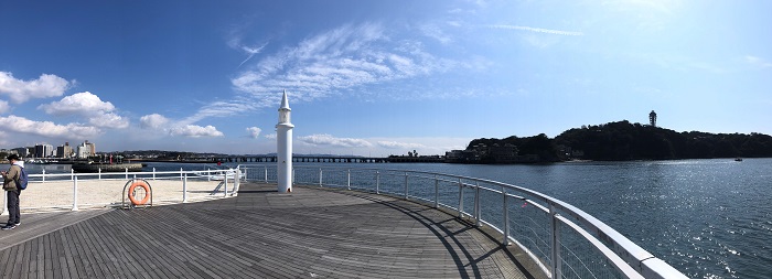 | 満開の龍口寺の河津桜 | 片瀬漁港突堤 |
