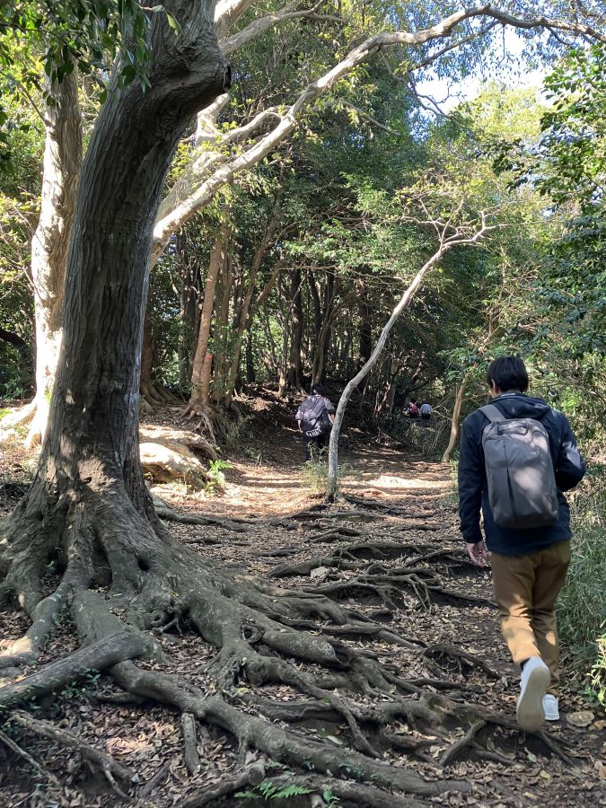 | 見 所 | 古都鎌倉の8つのハイキングコースのうち長谷から浄智寺に抜ける「葛原岡・大仏ハイキングコース」の山歩きと、そこへのアプローチとしての海岸散歩を組み合わせた、この土地ならではの変化に富んだウォーキングを企画しました。葛原岡・大仏ハイキングコースは早春から秋にかけて梅、桜、紫陽花、菖蒲、桔梗等の花々や紅葉を楽しめることで評判です。はたして冬にはどんな景観が待っているのか乞うご期待。(写真:大仏ハイキングコース) |