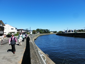 | FWAのイヤーラウンドの4コースを選んで、矢張りなどの表示はなく地図をたよりに自由歩行で歩く、また藤澤宿コースは団体歩行で藤澤宿の面影を残す社寺や史跡をゆっくり巡る。 昨日の台風による強風もおさまり、今日は快晴のとなり日射しは暑いが、カラッとした陽気になりウオーキング日和となった。 出発式は電車の遅れがあり少しずらしてはじまり、10時ごろに各コースに分かれ、途中までスタッフが先導しあとは自由歩行で歩く。江の島コース(12km)が一番参加者が多く、鎌倉山コース(18km)は少なかった。私は参加者が多い江の島コースに参加した。境川沿いを下り、日射しはまだまだ強いが、乾燥した川風が気持ち良く快適に歩き、江の島地下トンネル抜けて弁天橋を渡ると、海の向こうに少し霞んでいるが、富士山を中心に周りの山もよく見える。富士に雪があればとつい欲がでる。江の島は平日でもそれなりの賑わいみせているなか、ウオーカーは縫うよう歩き、真赤な大きな鳥居のそばの江の島エスカー乗り場で列をなしてチェックポイント(CP)のスタンプ押す。 再び弁天橋を渡り、湘南の景色を楽しみ、海岸を離れ洲鼻通りを通り、江ノ電駅前で湘南海岸コースのウオーカーが片瀬海岸に現われるころと思い、西浜に向かう。 雲ひとつないスカイブルーと紺碧の海そして霞みかかった富士と湘南を代表する素晴らしい景色が広がっていた。片瀬海岸は、17日に江の島花火大会の準備かテントなどが準備中だった。 江の島水族館前当たりからウオーカーとすれ違い富士をバックに写真を撮る。鵠沼海岸に来るとウオーカーはいなくなり、もうウオーカーに会えないかと心配しながら辻堂海岸まで行くと、やっと数人(女)のグループに出会いアンカーだというので一緒に歩き、富士や江の島をバックに写真を撮る。このグループは辻堂海岸地下歩道でいなくなり、私は来たコースを戻り、江の島から境川沿いをゴールの奥田公園に向かった。 今日は、快晴に恵まれ各コースで湘南の秋の景色と心地よいウオークを楽しんだでしょう。(石井邦敏) |