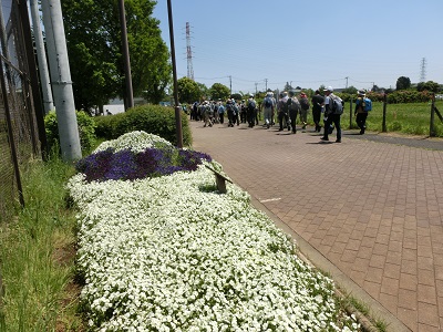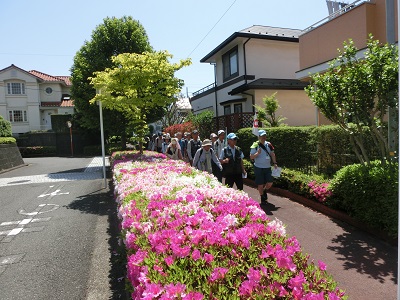 朝から雲一つない快晴に恵まれ、今日はゴールデンウイークの初日である。 新緑が美しい季節に泉区の公園めぐる。今年は季節が半月ほど早く進み、すでに日射しは初夏のようだが、湿度が低くからっとした天気である。 大きなケヤキが新緑が朝日浴びてキラキラと輝く湘南台公園に大勢のみなさんが集まった。 出発式でスタッフから水分を適宜取るように話があり、9時15分につづじが満開の公園をスタートした。暑い日射しに日よけ対策を万全に、いずみ野線くぐり下飯田の住宅地通り、庭先の真っ赤に咲いたつづじや、花々を楽しみ赤坂橋を横断する。和泉川沿いの新緑のなか行くと、旧河川敷を利用した広場に出ると親水公園である。 さらに和泉川遡り、住宅地を少し登ると丘陵地に森に囲まれた泉中央公園に着く、ここで水分補給、トイレで一休み。さらに和泉川を行くと、いずみ中央駅前に当協会でよく利用する地蔵原の水辺(公園)があり、さくら並木や小さな水路があり、これからの季節は子供達の遊び場になる。近くの泉区役所でトイレを借りて休憩。 和泉川からはなれ、和泉中央の住宅地を抜けて行き、和泉三俣信号を横断し、すぐに中田中央公園に着く、立派な野球場があり、外野側をまわりレストハウス前で休憩。花壇に目を向けると、富士山の型に小さな花が満開でそれらしく表現していた。東中田小を過ぎるとこじんまりとしたふれあい樹林を抜けて、しらゆり公園に11時40分ころ到着。ショーコース(10km)ここがゴールで最寄りの駅は地下鉄中田駅である。ロングコース(15km)は昼食休憩。木陰で楽しみな昼食をとり、爽やかな風が吹き抜けて心地が良い。 12時20分にストレッチ後出発、領家中から領家緑道が始まるが、入口には大きな日時計が設置され、一回りして両側に新緑の木々が日射しを遮り、満開のつづじ楽しみ快適に緑道を歩く、終点が領家公園、池の木道を渡る。次に住宅地の真ん中に西が丘緑道があり、両側の住宅は大きくしゃれており高級住宅地のよう、立て看板には建築協定区域とあった。緑道の終点がゴールで、最寄りの弥生駅に向かう。(石井邦敏) |