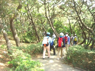 | 可愛い保育園児にはついシャッターが | ヘッドランド、遠くに烏帽子岩 | ||