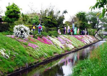 | 渋田川の芝桜 | 渋田川の見頃が過ぎた芝桜 | 写真:浅田 | |