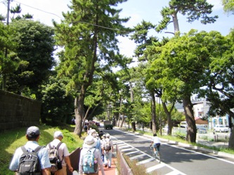 | 湘南平で休憩(いきなりの登りにバテタ) | 旧東海道の松並木 | ||