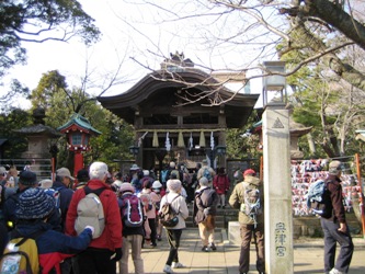 | サムエル・コッキング苑前の芝生広場の日溜りで昼食。 | 江島神社(奥津宮)は神門の天井に「八方睨みの亀」が有名ですが見ましたか。 | ||