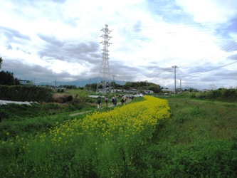 | 田植え前の田園風景 | 写真:石井 | 帯状の菜の花畑 | 写真:石井 |