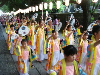| 滝ノ川沿いの里芋畑を行く | 石井 | 子供の流し踊り(遊行ばやし) | 八柳 |