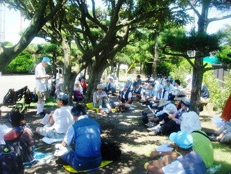 | コース:辻堂駅→土打公園→長久保公園→引地川川辺の散歩道→鵠沼運動公園(昼食・ウォーキング教室)→サーフビレッジ→新江ノ島水族館横くら げ広場(解散)…片瀬江ノ島駅 |