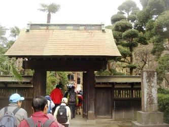 | お正月の村岡七福神めぐりは終わったが、7寺社のうち宮前御霊神社と川名の御霊神社の2社を除く、5寺社ほかをめぐるという企画である。 村岡は10世紀ごろ、ここに勢力を持っていた平良文が平将門を討って関東の大勢力となり、荘園を開いたと伝えられる地区で藤沢では歴史が古い地区である。 10時15分出発、最初に訪れたのは312号県道田谷・藤沢線高架下脇の日蓮宗弥勒寺、この辺りの地名ともなった嘉禄2年(1226)創建の古いお寺である。毘沙門天は本堂脇から急な石段を上った所にあったが真新しい石像であった。それもそのはず村岡の七福神めぐりはまちおこしのため数年前始められたものという。お堂の古さと石像はアンマッチである。 その先、数分で荒神神社、当地に住む小塚五左衛門が小祠を建てて一族の守り神としたという小さな神社、布袋小尚を祀る。 小塚、高谷の交差点から北に向かうと高谷大神宮、高谷地区の鎮守、65段の階段を上ると神殿の右に大黒天があった。高谷神社を出ると右側には市指定文化財の庚申供養塔の石塔群があった。 高谷小学校前を下って、曹洞宗天嶽院へ。石像の仁王様が茅葺屋根の立派な山門の前に立ち睨みを利かす。山門を入った左側に安永3年(1774)の銘を持つ梵鐘、現在は定時に自動的に鐘がつかれる装置になっていた。その奥が東司(トイレ)、今日は100人もの参加者があり、その先オリンピックのトイレも借用、休憩15分、11時45分に出発し、渡内の住宅地を通り日枝神社へ。住宅地の所々には白梅、ロウバイ、ボケが咲いていた。 日枝神社着11時55分、平良文が屋敷の守護神として日枝大神を祀ったとされる。なぜか弁財天を祀る。この辺り、かつて名主であった福原家の敷地、長屋門は新林公園に移築され、現在宅地造成中、神社は新築され、整理によって集められた庚申塔などが石段下に並んでいた。 32号小袋谷藤沢線に出て西へ慈眼寺、ゴルフ練習場、312号線の横断歩道橋を渡り、柄沢神社へ。柄沢地区も宅地造成中で、僅かに鎮守の杜が残っていた。 12時30分、柄沢公園で昼食、13時5分から30分まで江尻さんのウォーキング教室。藤が岡の住宅地、団地・マンション群を通って14時、若尾山公園で解散となった。 昨日は大寒というのに最高気温が18度にも達するお天気であったが、今日も日中気温は15度まで上がり、途中から上着を脱いで歩く人も多かったので、疲れた方がおられたかもしれませんね。(Y・Y) |