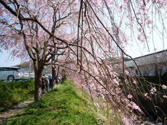 | 葛川の桜並木 ときおりさくらが舞い散る | 葛川のしだれ桜も満開 | ||