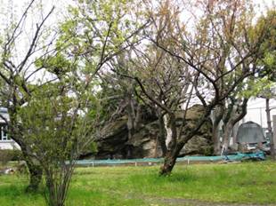 この古戦場を抜け、柏尾川の神鋼橋を渡ると神戸製鋼藤沢工場の前に出る。敷地に沿って長い金網のフェンスが続く。「兜松・八ツ島」の碑がある。兜松は神鋼の工場内にあって、フェンス越しに見る。兜松は古い。源義家が後三年の役(1083)で反乱軍を鎮圧し、その戦勝記念の兜を埋めたといわれる。JR東海道線に出て跨線橋を渡るとミズノフットサルプラザである。こちらで、昼食をとらせて頂いた。