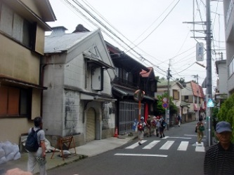 | 台風5号接近に伴いお昼頃から雨が降るとの予報とあって、コースを変更しお昼前には終了することとなった。奈良景観課課長の挨拶に続き、簡単なアンケートが配られ、9時30分頃、市役所本館前を出発した。いきなり国道467号線を横断する陸橋から見る桜時の景色は藤沢地区景観1であるが、景観色々という所であろうか。 467号線と旧江の島道が交差するロータリーの中には杉山検校がたてた江の島弁財天道標があったが、道路拡幅工事のためいずこにか移設されていた。 旧江の島道に入るとほどなく左手に元米穀商榎本家の土蔵造りの家が、わずかに往時を偲ばせてくれた。このあたり、蔵前といい江戸時代、境川を利用して年貢米を陸揚げした所である。現在は「蔵前ギャリ―」として、地域の歴史と文化を発信する場となっているが、今日はお休みであった。(2012年景観まちづくり賞を受賞) 藤沢橋の交差点に出る。角の自動車屋さんの看板は、遊行寺の門前にはいただけないが、藤沢橋と赤橋の間にある自動車排出ガス測定局は蔵風の建物で、藤沢宿再生のパイロットとなる建物だ。浮世絵の看板とともに歩行者に往時を偲ばせてくれる。(2012年景観まちづくり賞を受賞) 遊行寺の黒門をくぐり、48段あると言われる石畳のいろは坂を上って、大銀杏の下で小休止。遊行寺本堂、小栗堂前から旧国道(30号線)に出ると箱根駅伝の難所でもある遊行寺坂である。一里塚跡の案内板があったが気付かなかった人もいたようだ。かつて江戸時代の東海道一里塚は崖上にあったそうで、現在の道は開鑿されたもの。今はその事を伝える教育委員会が立てた案内板のみである。遊行寺坂の頂点、遊行坂上から、旧海軍時代から続く横須賀水道みちに入る。藤沢地区景観5である。真直ぐな道が善行方面に続く。 パラパラと雨があり雨具を取り出した人もおったが、すぐに止んだ。 藤沢バイパスをもぐって、大清水小、藤沢清流高校の横を通り、境川大清水橋に出る。ここから下流の鷹匠橋までの両河岸約400mが今日のお目当ての大清水アジサイロードである。このアジサイは、地域住民、学校、家庭の三者連携により護岸にアジサイが植栽されたもので、2012年景観まちづくり賞を受賞している。アジサイは順次、植栽されたようで、大きく成長したアジサイからまだ小さいアジサイまで、ブルーのホンアジサイ、白いガクアジサイ、山アジサイ、あとは名前が分からない。バラのように名札をつけたらという声もあったが、アジサイはトータルの彩を鑑賞するものであろうか。アジサイの手前にひまわりが植えられていたので、夏にはひまわりロードになるであろう。 両岸をゆっくりと鑑賞し小休止。途中、住宅地内の金網で囲まれた調整池のスイレンを見て、御殿辺公園で解散式となった。途中、白旗神社を経由して小田急本藤沢駅へ。11時半頃、予報通り雨が降り出した。(y・y) |