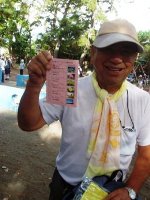 | ゴールの茅ケ崎公園 IVVシールを渡す | サマーウオーク完全完歩で満足そうな参加者 | ||