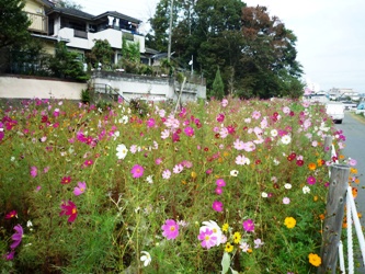 | 引地川を渡る横須賀水道 | 引地川沿いのコスモス | ||