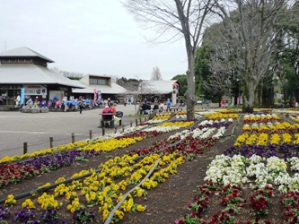 | 相模原の春の花を求めて、緑道と大きな二つの公園をめぐるウオークである。 昨日は20℃を超えて初夏のような気候から、夜中の雨を境に一転して冬に逆戻りの寒い日を向かえた。 幸い朝には雨も上がったが、冷たい北風が吹き抜ける相模大野中央公園に寒さにも負けず200人が集まった。 9時45分ころ3班に分かれ出発、街中を通り国道16号線を横断し、鵜野森地区の相模緑道緑地に入る。緑道はきれいに整備され、住宅地の中を通る歩きやすい道で、白やピンクのコブシが咲き、梅の花もまだ残っていた。 再び16号線を渡り静かな慰霊塔への道を歩き、正面には太平洋戦争戦没者を合祀した立派な塔が立っていた。梅が咲く広場でトイレ休憩。相模大野台中学を過ぎると、明るいナラやクヌギなどの落葉樹の「こもれびの森」に入る。相模野の面影を残す平地林で「かながわ美林50選」にも選ばれた森を気持ちよく歩く。新緑の時期にも歩いてみたい森である。森を抜け北里大学前のまっすぐなの道を行き、公園入口交差点を渡り、すぐにサルスベリゲート口から相模原公園に入る。 メタセコイヤの並木に囲まれた西洋の宮殿の庭園を思わせる噴水広場のすばらしい景色が眼に入る。奥の方には公園のシンボルのグリーンハウス(温室)が見える。管理事務所前のひろばに着いた時、からくり時計台が丁度12時を指し、音楽が鳴り響きお人形が踊っていた。ここで北風を避けて思い思いに昼食休憩をとる。この公園は平成4年に都市緑化フェアが開催されて以来、花や緑の情報発信拠点として活躍している。管理事務所の周りには、パンジーやクリスマスローズが咲く花壇、満開の河津さくらや黄色が鮮やかなミモザなどが公園を彩る。 午後からは、「水無月園」に寄り冬牡丹を観賞する。、約20本ぐらいワラに覆われた冬牡丹は、盛りを過ぎていて2,3本しか花は残っていない。初夏には約3万株の花菖蒲が咲き競う光景は見事だと言われている。広大な公園抜けて女子美術大学の脇を通ると、卒業式らしきハカマ姿の女学生を見かける。隣接する相模原市を代表する麻溝公園に入り、シンボルのグリーンタワー展望塔を眺め園内を通り抜ける。相模野台地の畑地帯は、昨日の雨で黒い地肌が広がり、水たまりを避けながら歩いて行く。市営の峰山霊園を通り、住宅地なかをつらぬく「さがみの仲よし小道」に入る。 かって、この一帯は相模野台地と呼ばれ広大な原野だったが、水がなく畑に水を引くため水路など築造した。今は開発されめざましく発展し市街地となり、この水路敷を活用し緑道として整備された。約5kmにも及ぶ緑道には、遅咲きの梅、河津さくら、コブシなどが所々に咲くのを楽しみながら快適に歩く。14時ころ緑道の終点で解散になり、最寄りの小田急相模原駅に向かった。(石井邦敏) |