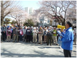 | 桜咲く長後公園にて受付 | チーフリーダーからコース説明を受ける |