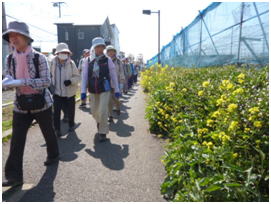 | コース:小田急線長後駅→長後公園→長後南歩行者専用道路→長後北歩行者専用道路→上飯田西公園→宮下新橋(和泉川・菜の花堤)→地蔵が原(昼食)→泉中央公園→作右衛門公園→和泉町第二公園→地下鉄立場駅 |