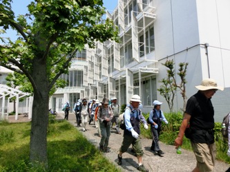 | 毎年、5月最終日曜日は、「ビーチクリーンアップかながわ」は、今年で37回目となり当協会も参加してから13年にもなる。 今日は海岸の6箇所でビーチ清掃が行われ、片瀬東浜海岸には色とりどりののぼり旗が立ち、プラカードを見ると町内会、企業、各種団体で約1000人近くが集まった。開会式(9時)の後東浜海岸の清掃活動(ゴミ拾い)が始まり、広い砂浜も人人で埋まり、約40分ぐらいで終了した。 当協会は28人で毎年このくらいだそうだがもう少し参加があるといい思うが。10時にウオークの谷村リーダーを先頭に東浜海岸を出発。朝から夏の太陽がふりそそぎ暑いが、爽やかな海風に吹かれ気持ちが良い。腰越から神戸川沿いの道を行き、腰越行政センターでトイレ休憩、モンタナ教会をまがり室ケ谷入口から、広大な緑の森が広がる広町の森に入る。尾根道に登りに入ると、緑濃い原生林のような森に圧倒されながら、山道を気持ちよく歩く。参加者からこの道は初めてだが素晴らしいコースとの声があがる。森が切れたところに出ると、相模湾展望出来る場所に出る。眼下に七里ヶ浜住宅街広がり、その奥に光る相模湾がかすんで見える。 さらに森に囲まれた尾根道を、谷から吹き抜ける爽やかな風を受け快適に歩く。途中には竹林のトンネルがあり、さらに最近倒れたらしい山桜が、根こそぎ倒れ道をふさぎ注意して乗り越える。この森をよく見ると山桜が多いようだ、桜の時期に歩いてみたい。尾根道を下って行くと突如として鎌倉山の住宅地にでる。しばらく鎌倉山の変貌(新築)する住宅を楽しみ、稲村ケ崎への下りに入り、緑濃い下り道を行くと、日蓮袈裟掛の松の碑に出た。約90分の山歩きを楽しんだ。 江ノ電の踏切を渡り、国道134号線は車で渋滞、地下道を潜り砂浜に出た。稲村ケ崎には12時15分に到着、ここで解散となり、直接帰る人もいたが、ほとんど日蔭の階段に腰を下ろし昼食後、近くの江ノ電稲村ケ崎駅に向かった。 谷村リーダーから広町の森にはいくつかコースがあり、今日のコースが好評だったので、またコースを考えてみたいとのお話がありました。今日は夏の太陽が照りつけるなか、ほとんどが森の中を歩き、暑さを忘れさせてくれたすばらしいコースでした。(石井邦敏) |
