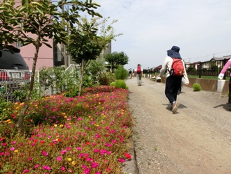 | 神奈川県歩きたくなる道5選ー48のKWA認定の「えぼし岩と茅ケ崎海岸のみち」のコースを自由歩行で歩く。 例年なら今頃梅雨が明けるころであるが、今年は7月6日に明け猛暑が続きうんざりしていた。ところが先週後半から猛暑がうそのようにしのぎやすく、今日も朝は涼しかった。 集合場所のに茅ヶ崎中央公園に着いたらびっくり、セミの大合唱に迎えられた。家の近くでもまだセミしぐれを聞いていない。 セミの大合唱のなか出発式が行われ、声が聞き取れないくらいだ。朝は曇っていたが今は良く晴れている。9時20分過ぎにスタート、飯島橋まで団体歩行で以後は自由歩行である。千ノ川沿いを下り、川幅一面に水が流れていたが、鳥井戸橋まで来るとカヤ(茅)が川一面に覆い、川の真中を小川のように流れがみえるのみである。千ノ川は、茅ケ崎市の中央を流れ、茅(カヤ)が生える川として地名の由来にもなっているようだ。今宿で小出川に合流し相模川へ流れる。 鳥井戸橋で国道一号線を渡ると、橋の角に左富士の碑が立っている。左富士とは、江戸から京への街道で、左手に見える富士山のことをいう。(ほとんどが右手側に見える)浮世絵として安藤広重の東海道五十三次の「南湖の左富士」が有名である。今日は、あいにく富士山が見えないが、橋から川の正面に何もさえぎるものがなく、富士山がよく見える名勝地になっているそうである。 左富士通りを行くと浜見平団地があり、昭和39年に建てられ当時は憧れ団地で倍率も高く入るのが大変だったようだ。今は一部は取り壊され工事中の塀に囲まれていた。 柳島海岸出ると遊歩道をサーファや海水浴の自転車が行きかい注意しながらの歩行となる。日陰がなく夏の太陽が照りつけるが、海風が吹き抜けて気持ちが良い。サザンビーチは、海の家の呼び込みが賑やかで砂浜には色とりどりのパラソルが立ち家族連れなどで賑わう沖合には、えぼし岩が浮かんで見える。 遊歩道では、白いハマユウの花が咲くの楽しみ行くと、ヘッドランドの出っ張りが目の前に見えてきた。砂浜の浸食を止めるため作られた施設、広い砂浜が残っているが、少し外れると砂浜が大きく削られていた。ここから、沖合にシンボルのえぼし岩が近くに見える。ここで10kmコースと14kmコースの分岐となり、私は、無理せずに10kmコースに入り、住宅地を通り、氷室椿庭園でゴールの印もらい、雄三通りを行き11時ころに茅ヶ崎駅に着いた。(石井邦敏) |