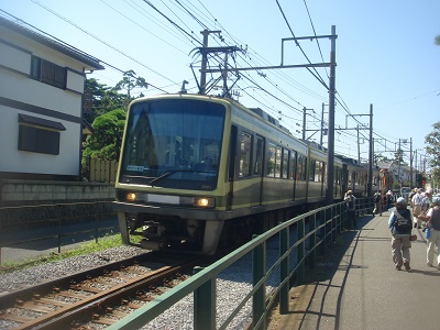 | はす池 まだ所々にはすが咲いていた。 | 住宅地を走る江ノ電沿いの道 |