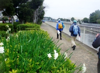 | 前日は関東地方に春一番が吹き、当日は雨の予報もあったが、終日雨にもならず終了した。 辻堂駅南口近くの駅前町公園を10時15分出発。辻堂海浜公園への道路を直線まっしぐら。公園を出て直ぐ道路の真ん中に大きなクスノキが一本立っていた。拡幅工事で伐採されずに残ったものであろう。木の脇にある茅葺屋根のお家も貴重な財産である。 出発してから20分余、距離にして約1.5km、辻堂海浜公園に到着。旧海軍演習地跡の大きな公園である。今通って来た団地や学校も演習地跡というから演習地は相当大きな広さであった。公園だけでも199千u、海・風・光の体感公園がテーマなそうだ。 辻堂のアメダスの横からしょうなんの森という松林に入る。高台の展望台でトイレ休止。下見の際はここから富士山、烏帽子岩、大島も眺望されたが、残念ながら見られたのは江ノ島だけだった。 所々に辻海岸の原風景が残る海浜の道を、次第に大きくなっていく江ノ島を見ながら歩く。国道134号線を横断する歩道橋を渡り、昭和通り(308号)に出る。 この浜見山歩道橋は富士を観る絶景ポイントであるが今日はお隠れ。 昭和通りを湘南工科大学正門付近から右折し住宅地に入ると、道路にせりだした松があった。周辺の住民と行政の理解がなければ、枝は伐採されたであろう。その先、住宅地の中には珍しいなまこ壁の知永美術館という陶器専門美術館があった。ランチもあるようだ。 辻堂小学校前からYR湘南海岸コースを作橋に出る。作橋は古い記録にもある農作業のための橋であったが、現在の位置ではないようだ。引地川の右岸の遊歩道を長久保公園まで、車に邪魔されず歩く。川にはカモメ、サギの姿が見られた。 長久保公園の春の花木はマンサク、ミツマタ、ハナモモ、ミツバツツジが見られたが、なかでもサンシュがすばらしかった。ここで昼食、完歩者表彰、ウォーキング教室後、12時45分頃、午後の部出発。 東海道本線の車中から見ることができた桜並木は、人々の目を楽しませてくれたが、旧パナソニック工場の撤退、大規模住宅地(スマートタウン)の開発のため残念ながら伐採されてしまった。同じような形をした家々が建設中であった。 北の寺と呼ばれる宝珠寺は景観8に選定された名刹であるが、お彼岸であるため境内に入らず門前参詣にとどめ、宝珠寺傘下の天王山の河津桜を観て、辻堂駅北口デッキ前に予定どおり14時到着、解散となった。(八柳修之) |