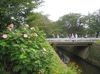 | 夏の花を脇に見ながら進む | 素敵な千本桜緑道 |