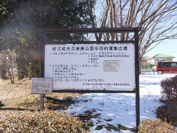| 「大きな傘みまもり広場」(雪の中の標識板) | 「阿久和東宮ノ腰公園」入口 |
