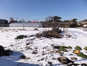 | 周囲の畑は真っ白な雪 | 長屋門公園への分岐道 |
