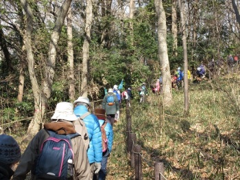| ウォークメイト「ふじさわの景観 130景」を継いで、平成26年9月から始まった「まだある70景」もいよいよ終盤に近づき3月までとなった。130景の終盤と同様、何とか多くの皆さまに完歩してもらおうとスタッフの涙ぐましい熱意や行動が日々続いている。今回のルートも皆さんのパスポートに欠けているシールを大判振舞いで提供しようというものになった。今回は120名の皆さんが参加してくれた。 集合場所の六会駅前公園はゲートボールの人たちで大変賑わっていた。私たちはグランドの外側の木立の陰に遠慮がちに集まってゲートボールを見ていた。岩村芳彦さんの青い帽子と白いジャンパーが目についた。話を聞くと、前日の「湘南藤沢市民マラソン」のボランティアでゲットしたという。なんでもFWAから数人がボランティアに出たらしい。ストレッチをして10:20に公園をスタートした。 境川に出る。枯草の河川敷に先週の雪が残っていて、曇った冬空の下、冬景色の中を元気に歩いた。天王森泉公園から俣野公園へ向かう。クヌギやコナラの雑木林の下、落ち葉を踏んで歩くと、かすかながら木や土の匂いが立ち上がってきて嬉しくなる。ロウバイ並木を通る。ここでも良い香りがした。俣野公園でトイレ休憩した。ウイトリッヒの森をスルーして、東俣野中央公園へ。横浜薬科大学のシンボルタワーが大きく近づいてきた。12時に東俣野中央公園に到着した。日差しがなく、寒い空気の中でランチタイムとなった。 12:35から表彰式。この日初めて70景の完歩者が11人出た。表彰式の後でウォーキング教室。今回は深澤さんが担当で、歩行姿勢が良くなる方法として、後ろ向き歩行をみんなでトライした。恒例の軽いストレッチをして午後の出発。旧1号線に出た。旧住友家俣野別邸庭園の横を通りゴールに向かった。西富の崖から西側を望む景観は、なかなかの展望だった。13:30ふじさわ宿交流館の手前でゴールとした。 (川澄 武雄) |