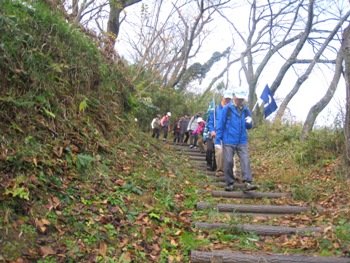 | 心配された雨も夕べの内に上がり、今日は雨の心配はない。 集合場所の洋光台駅近くの洋光台南公園はFWAが利用するのは初めてである。上段に野球用グランド、下段に多目的グランドがあり広い。今回は中段にあるレンガを敷き詰めたスペースが集合場所だ。きれいなトイレと周りに程良い木々が茂っており、初冬の様子がうかがわれた。受付け時間の9:00〜9:30はまだ曇っていてちょっと寒く、上着を着込んだウォーカーが次々に集まってくれた。 遠く新潟市から参加された女性があり、朝5時半に家を出たらしい、会場にはギリギリに到着された。インターネットで見て来られたとのことで、嬉しい限りです。 今回の例会は健脚向きである。出発式ではコースはかなりのアップダウンがあり大変だがその先に素晴らしい景色の見所があり、景観を楽しんで下さいとの説明があった。ストレッチ後、9:50 班分けしてロングの1、2班から出発、ショートの3班がその後に続いた。この頃には晴れ間も出てきて少し暖かくなりそうだ。 洋光台タウンの南に向かって緩い傾斜を上って行き、街外れの畑地を越えると、峰市民の森への最初の上り道である。森の上の方の甘沼休憩所を通って山の上から今度は一気に下る、階段上のキツイ下りを足元に注意しながら下りた。この先横横道路を越えて円海山無線中継所に向かって上って行く、住宅も点在する斜面であるがダラダラ長く結構疲れた。10:50頃やっと尾根道に辿り着き、直ぐ先でトイレ休憩。 いっしんどう広場から右に分岐、暫く歩いて尾根道から外れ左の氷取沢市民の森へ下る、下りるに従って水が浸み出して歩きにくかった、谷に下りると木道がありその上を歩いて行くとせせらぎがあった。ここは大岡川の源流らしい。木道脇では中高年のオジサン達が望遠カメラを構えていた、聞くと瑠璃色の奇麗な小鳥ルリビタキ?を待っているらしい。 木道に続くおおやとの広場は広々として、周りの木々が紅葉・黄葉し素晴らしい景観を呈していた。思わず周りを見回し絶景に見惚れ、疲れも吹き飛ぶ思いであった。写真を撮るウォーカーも多かった。横横道路の下を通って右の畑の道に入ると見事なサザンカの花が咲いていた。真っ赤な花びらを踏みしめて小さな橋を渡ると、せせらぎに沿って真っすぐのびる小路にはモミジが紅葉し気分も爽快。更に高速道のトンネルを潜った先にはシダが一面に茂ったシダの谷があり、木道を今までと違った雰囲気に包まれて歩いた。そこを過ぎると広い空が開けたののはな館(金沢自然公園)に12時前に着いた。かなり遅れて到着した3班(ショートコース)はここがゴールである。 薄日も射してきた広場で其々に弁当を広げランチタイムである。皆さん、弁当を頬張り楽しそうにひと時を過ごしていた。12:20出発前の軽いストレッチの後、午後のスタート。ここからは六国峠ハイキングコースをひたすら下って行く。良く整備され歩き易いコースはつい早足になりスピードが上がる。森中の快適な道をぐんぐん進むと谷の不動池に着いた。池を眺めながら一休みして再び山道を上り返して能見堂跡に辿り着く。看板に能見堂跡の解説があり、諸説あるがここに躑筆山地蔵院があり金沢八景が能(よく)見えることから能見堂と呼ばれていた・・・など。 コース道を下って行くと住宅街に出て間もなくゴールの金沢文庫に13:50頃着いた。参加者は駅手前でIVVを受け取り、駅へ向かい帰路についた。 コース途中の谷あいのせせらぎ・池・広場・紅葉など変化に富んだとても気分の良いウォークでした。14km超の長丁場お疲れ様。(阪本 茂義) |