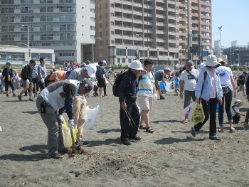 | 広く晴れ日差しが強く、5月としては過去にない猛烈な暑さの一日となりました。昨日のふじさわ市民ウオ−ク2019に続き、ビ−チクリ−ン&ウォークには、やる気満々の参加者がトング、軍手、ゴミ袋持参でスタッフを含めて45名も集まって下さいました。広い砂浜も人人で埋まり、町内会、各種団体、各企業関係のプラカードやのぼり旗が並び、その中でも一際目立つ緑色のFWAのぼり旗に次々と参加者が集まって来ました。 9時からの開会式では鈴木市長より、今日市内では5箇所でクリ−ンキャンペーンを行っており一人でも多くの方が関心を持ってもらえる事は嬉しいこと。来年オリンピック競技も行われ世界で江の島の環境が注目されているので、心をこめてゴミを拾ってもらいたい。海のゴミは陸からも流れてくる、陸の皆さんにも声が届くように頑張って頂ければと思っている。とのご挨拶がありました。 市長のお話の中に「陸」とありましたので調べてみました。「海岸のゴミ」は海岸に遊びに来た人が捨てたモノと私も思っていました。でもそれは海岸ゴミの約3割にすぎないそうです。残りの7割は川からやって来る。雨という「水の流れ」が山や川岸や街にあるゴミを集めて、川を通じて海岸まで運んでくる。海岸まで行ってゴミを拾えない方も、足元のゴミを拾うことで街が綺麗になるだけではなく、遠く離れた海岸もまた綺麗になるそうです。 毎年5月30日(ゴミゼロ)直近の5月の日曜日に、藤沢市と公益財団法人かながわ海岸美化財団が市民、各団体、各企業の皆さまと一諸に、藤沢市域海岸一帯のボランテア清掃として、ゴミゼロクリ−ンキャンペーンを主催している。またこのキャンペーンは相模湾岸の一斉清掃であるビ−チクリ−ンアップかながわの一環として開催され、これにより海岸の美化とともに参加者の海岸美化意識向上を図っているそうです。FWAも2000年以降毎年参加して、今年で20回目、参加者も年々増加傾向にあるようで、嬉しい限りです。 ところで海岸の大きなゴミはブルで回収済みなのでしょうか。目立ったゴミはあまりなく、皆さん砂をかき分けながら、小さな紙くずや煙草のフィルタ−などを拾い集めていました。45分程でクリ−ン清掃作業を終了し、水分補給をしウオ−クの準備にとりかかる参加者。ひと仕事終わらせ晴れ晴れとした表情で集合写真を撮り、トイレ休憩を済ませ10時5分頃いよいよ今日のウオーキングのスタートです。 片瀬東浜海岸を出発し龍口寺、常立寺前を通り少し先を右折、湘南白百合学園横の少しきつい坂を上り、途中の日陰で列詰め水分補給をします。その後片瀬山住宅街を進みビューポイントに到着、富士山がうっすらと見え出迎えてくれました。片瀬西公園を右折して給水塔前を通過、道路の左側は片瀬山、右側は西鎌倉という藤沢と鎌倉の境界線となっている道路を道なりに進み、住宅地のはずれ足場の悪い急な上り坂を一列で進み、スタッフの手をかりながら上りきります。そのまま藤沢鎌倉市境の尾根道へと進み、小鳥のさえずりを聴きながら木陰で後方の参加者の到着を待ちながら小休憩。今日は猛暑のため、身体もまだ暑さに慣れていないので熱中症の心配も有り、こまめな休憩、水分補給をするようスタ−ト時にスタッフより案内がありました。さらに今度は尾根道を下り暫く進むと、目の前がパァっと明るく広がりマンションや工場が近くに見えて来ました。 道なりに歩く途中、市指定の史跡「神光寺横穴古墳」を見学し、新川名橋を渡り左折、境川沿いに少し歩き奥田公園には11時30分少し前に到着しました。その後は昨日から開催されているふじさわ産業フェスタの会場へと向う参加者もいらして、良い汗をかいた後での美味しい物を食べたり、飲んだりと楽しいランチタイムでしょうか。 真夏のような日差しの中、お疲れ様でした。 (渡瀬 まさみ) |