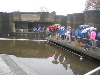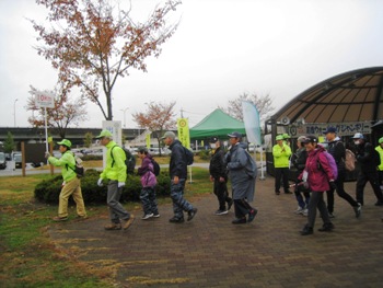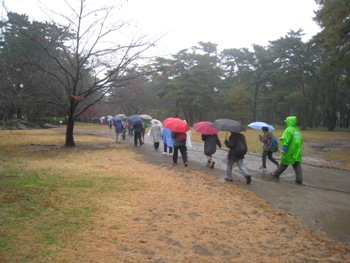 | 11月23日(金) 赤城山大沼周辺散策&赤城神社・世良田東照宮参拝 今回のバスウォークは東照宮巡り6回シリーズの2回目である。 1日目は曇り空の下、8時5分に藤沢駅前からバス2台を仕立て85名の参加者が一路目的地の群馬県の赤城山に向かった。圏央道から関越道を経由して、群馬県に入るとだんだん赤城山が近づいてきた。赤城山は遠くから見るとすそ野がとても広く緩やかな山に見えるが、ぐんぐん上って行くと険しい坂が箱根以上で、九十九折りのカーブが77箇所もあった。山上には道路脇に残雪が残っていた。外は寒く濡れていたので持参の昼食はバス移動中に済ませ、大沼に着いたのは12時を過ぎていた。 標高1300mの大沼湖畔に降りると肌寒く身震いがした。朱色の大洞赤城神社を参拝し、バスハイクの安全を祈願した。近くのビジターセンターに移動しトイレを済ませ、前にある覚満淵を一周する散策路の木道を歩いた。小雨が降り始めたが足元に注意しながら先に進んだ。沼の岸辺は氷結していて一層寒さが増すのを覚えた。霧で見通し悪く雨もひどくなってきたので途中で引き返した。 バスに乗車し赤城山を下り、山麓にある三夜沢赤城神社に移動。鬱蒼とした森があり奥の本殿を参拝した。更に今回の東照宮シリーズの目的地で徳川氏発祥の地である世良田東照宮に向かった。徳川三代将軍家光公が日光から移築したという世良田東照宮、宮司が本殿前でお出迎えされ東照宮の説明をして下さった。宝物館、拝殿、本殿など広い境内を自由見学した。 今日の行程はここで終り、宿のホテルに入った。 11月24日(土) 前橋ウォーキングジャンボリー参加 2日目は前橋ウォーキングジャンボリーに団体参加だ。朝から厚い雲が空を覆いはっきりしない天気で、ホテルからバスでジャンボリー会場に着く。会場は高層の群馬県庁ビル近くの楽歩堂前橋公園、参加者は事前申込者327名、当日参加を合わせて354名であった。出発式まで30分程あったので公園に隣接する臨江閣(明治17年に迎賓館として建設)の庭園を見学した。築山・池・松などの木々が絶妙に配置され、素晴らしい景観を呈していた。丁度モミジなどの紅葉が盛りで、一層景観を引き立てており、庭園と臨江閣が調和し、とても良い雰囲気を醸し出していた。 8:50出発式。来賓、実行委員長の挨拶後、ストレッチで身体をほぐした。コースは18kmの自由歩行、10kmと5kmの団体歩行の3コースがあり、9:20から10分間隔で出発していった。私は一番参加者の多い10kmの仲間に加わり歩いた。出発式では止んでいた雨も出発後間もなく小雨が降り出した。カラフルな雨具を身に付けた集団が、利根川の左岸堤防道を上流に向かった。この前の台風による豪雨で河原には流木の残骸の山が列をなして積み上げられていた。 どんどん上流に向かって歩くこと約40分で川から離れ大きな球場のある敷島公園に入って行った。更に奥にはバラ園があり、広~い園内を反対側の出口まで気持ち良く歩いた。相変らず霧雨が降り続き肌寒かった。 ここからは街中を会場に向かって戻るコースとなる。途中、「岩神の飛石」と言う所に立寄った。2階の建物にも届きそうな大きな巨岩が街中に忽然と現れた。由来によると、赤城山の溶岩塊が火砕岩流と泥流によってここまで流されて来たとの説が有力である。信じがたいが巨岩をぐる―と見て回ってその大きさに驚くばかりである。敷地内には岩神稲荷神社がある。ゴールの中央公園に戻ったのは12時前であった。ゴールの会場近くにも前橋東照宮があり訪ねた。幹線道路際にあり七五三のお参りで賑わっていた。帰路、富士見温泉みはらしの湯に立寄り温泉で疲れを癒やした。藤沢には18時半頃帰着した。 2日とも雨模様であったが、往路・帰路ともスタッフの粋な計らいでバス内は和やかで楽しい雰囲気に包まれていた。お疲れ様でした。 (阪本 茂義) |