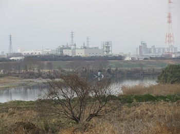| 目久尻川堤からの平塚市街風景 | 「相模海軍工廠跡」碑 |