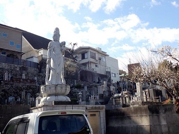 | 境内にある観音様 | 脇からとった潮音寺本堂 |