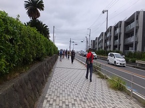 | 鎌倉海浜公園→龍口寺まで 本日の例会はKWAパスポートシリーズの街道シリーズ「京鎌倉往還と江の島道」で出発会場は二ヶ所に分かれていた。その一つは鎌倉駅から20分ほどの「鎌倉海浜公園」であり、もう一つは片瀬江ノ島駅から5分の「洲鼻公園」である。そのためレポーターは二人用意された。鎌倉スタートは露木が担当で、江ノ島スタートは川澄が担当となった。 先ず鎌倉海浜公園スタートからレポートを始めることとしよう。朝から快晴ではないが雨の 心配もない会場には大勢の参加者が集まり受付を待っていた。KWAの受付はKWAのスタッフ4名が対応し、それ以外はFWAのスタッフ対応で行った。 公園を出て国道134号線を右折し、江ノ島方面に海沿いを進む。目の前には相模湾が拡がり、由比ケ浜の海水浴場は人影は少なかったが静かな浜辺が続いて気持ちが良かった。由比ガ浜は西側の長谷地区側から海岸に沿って形成された海浜砂丘帯であり、古くは砂丘の上は人類の生活の場として利用されており、中世には幾多の戦場の場としても歴史に残る場所でもあった。そんなことを想いながら海沿いの134号線を進み、信号「坂ノ下」を過ぎて緩やかに左にまがる道を暫く進み、稲村ガ崎の山を切り開いて両脇に地肌が見える道路を通過した。そして次の信号「稲村ケ崎駅入口」を過ぎると今度は左手には七里ケ浜が拡がり、右手には七里ガ浜高校があった。その先の信号「行合橋」を過ぎ、暫らく左手の七里ケ浜を眺めながら進むとその先に信号「鎌倉高校駅前」があり、すぐ先の右手の「鎌倉高校前駅とホーム」、そして丁度入ってきた「江ノ電の華やかな車両」をパチリと写真に収めた。 少し進んだ先の信号「小動(こゆるぎ)」で国道134号線と別れて右折、江ノ電「腰越駅」の踏切を渡り、左の江ノ電の線路沿いを直進、信号「神戸橋」を過ぎてさらに進むと龍口寺」の交差点に到着。左に江ノ島電鉄線の「江ノ島駅」、右手に湘南モノレール江の島線の「湘南江の島駅」があり、ここで露木のレポートは終了し、この先は川澄レポーターにバトンタッチとしたい。ありがとうございました。 (露木 照久) |