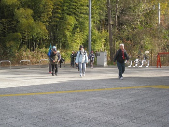 | このところ関東地方は冬らしい晴天の日が続き、今日もしかり、良い天気に恵まれ青空の下のウォークメイト開催となった。一昨日の「納めのウォーク寒川神社」でも湘南台の円行公園が受付であった、今日もこの公園が集合場所であり西方向の慶応大学までは同じコースを歩く。いつもと変わらず早い時間から参加者が集まってきていた。 9:45になり受付開始、参加費を払って地図とメタセコイア写真シールを受け取りそそくさと小グループの旗の下に並び出発を待つ。15人ほど集まったところで1斑が出発して行った。筆者の私も1班の後を追う。2班以降も同じように人数を調整して出発することになる。 一路西を目指し、北警察署、いすゞ工場、北部環境事業所、イトーヨーカドー、ジャンボゴルフ場を左右に通過し慶応大学前まで一直線に3km超歩き、慶育病院前を右折してしばらく行けば遠藤笹窪谷公園に到着。トイレ休憩をとる。冬を迎える公園は奇麗に草木が刈られ殺風景な風景が広がる。2班も間もなく公園に到着、こちらは人数も多く急に賑やかになった。 休憩後は2班と一緒に行動する。公園北側の出口から左手の森の緩やかな道を上ってゆく、人家が現れ生活道を更に西方面の少年の森へ向かう。少年の森手前に西側が開けた場所がある、富士山ビューポイントの看板があり富士山が良く見える。参加者皆さんがしばらく景観を楽しんでいた。少し先に行くと樹林帯の中にもみじの林があり、空からの陽射しを受けてオレンジ色に輝きとても奇麗、参加者もしばし見とれていた。 すぐ先が少年の森で、広々と芝生広場が広がっている。一角に大きなメタセコイアの大木が数本並んでいる。茶色く紅葉する葉っぱは既にほとんど落葉しわずかに残った葉、淋しく佇んでいた。ひと休みの後出入り口に戻り、別の道を通って妙福寺前、内戻しの大通りに出て、慶応大学前に向かう。この大通りの慶応大学敷地横の中央分離帯にはメタセコイアの並木があるが、ここも紅葉の時期には遅く、見頃は過ぎていた。慶応大学バスセンター手前のゴール打越公園に間もなく到着した。12時前であった。 今年最後のウォークは天気に恵まれ藤沢市の北部、遠藤・内戻地区ののどかな景観を楽しめたひと時でした。 (阪本 茂義) |