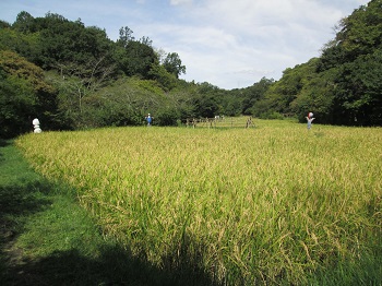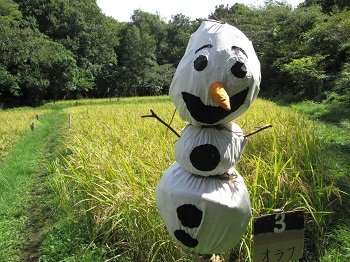 公園谷戸の田んぼ 黄金色の稲穂 | 案山子「オラフ」 | |