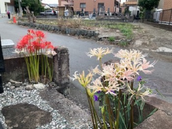 秋を伝える彼岸花 | 長後市民センターに集合した石碑たち |