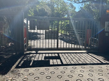 ウォーキングのゴールは坂の下でしたが、 上まで登ってみたら無人のスライドゲートが ありました。 |