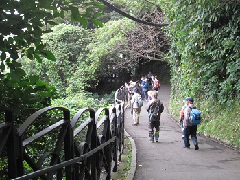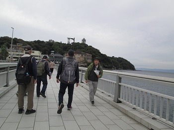 今日のゆっくりウォークはタイトルが「のの字の江の島」とあるように、奥田公園から江の島に向かい、江の島に渡って右周りに頂上経由でのの字を書くように島内を巡り仲見世通りに戻ってくる島内を楽しむコースである。