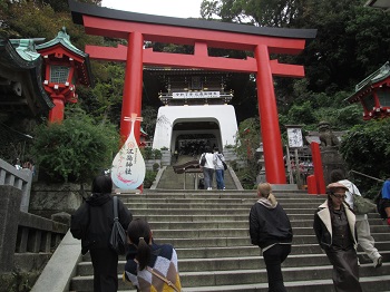 時間帯も早く江の島は開いてる店は少なく、観光客もまばらで歩き易かった。江ノ島のヨットハーバーの前にある聖天島公園から江島神社への上りは、石段が連続してとてもハード、一気には上れない。江の島頂上の灯台があるサムエルコッキング苑は既に開園しており昼間は入場無料である。夜間は丁度、1万本以上のキャンドルで埋め尽くされる「湘南キャンドル」が始まっており入場料は有料となる。ぐるーと廻って江島神社・仲見世まで戻ってくるとさすが観光客も多く賑やかである。
