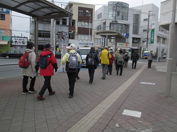 | 場所変更して長後駅前で受付 | 1班の出発 |