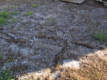 | 富士山をバックに写真撮影の様子 | コース脇には霜柱がビッシリ | |