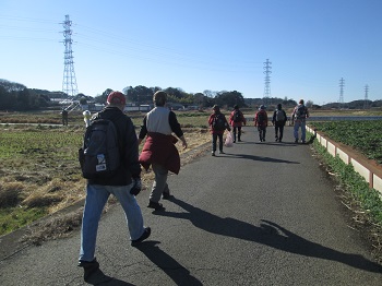 | ウッ! ヴルヴル、オー寒・・・。今シーズン一番の冷え込みか? 今年最後の例会は雲一つない快晴、ピーンと引き締まった澄んだ空気に包まれ絶好のウォーキング日和となった。 恒例の納めのウォークは1年の締めくくりに寒川神社に参拝する。 好天に恵まれ、富士山を正面に見ながら歩けるコースを考えるとワクワクする。 今年のコースはチーフリーダーの工夫がみられる。北警察署、いすゞ自動車工場、イトーヨーカドー、慶応大学前を西へ西へ、さらに真っすぐ西に進み内戻しの交差点から南に方角を変え、茅ヶ崎里山公園にCP(チェックポイント)を置く休憩場所でもある。この先は西に方角を変え、農家・田畑・寺院の間を進み寒川神社を目指す。今までとは少し違った小出川を挟んで北側と南側の富士山が良く見える欲張った生活道の匂いがするコースである。 コース半ば慶応大学を過ぎて緩い坂を上りきると富士山の雄姿が眼前に突然出現した。参加者の皆さんから歓声があがり盛んにシャッターを切る姿が多くなる、このコースのハイライトである。茅ヶ崎里山公園まで富士の雄姿を楽しむことが出来る。のどかな里山風景が広がり気持ちも足取りも軽やかになった。参加者の皆さん、満足のウォーキングを楽しめたのではないでしょうか。お疲れ様! 今年1年間沢山の皆さんに例会に参加戴き、誠にありがとう御座いました。 (阪本 茂義) |
