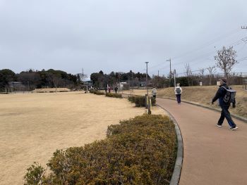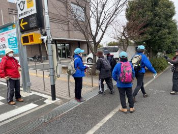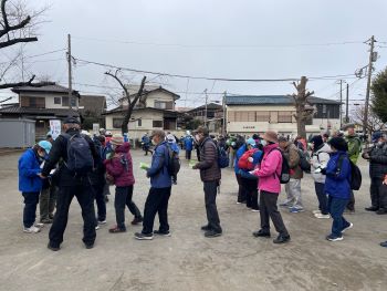昨日まで続いた小春日和から一転して今季一番の冷え込みとなった今日、最高気温は6℃との予報でした。どうなることかと心配の向きもありましたが、スタートの長後公園に向かうと、十分な防寒対策を施した歩気(やる気にかけて私が作った新語で「あるき」と読みます)旺盛な参加者がいつもと変わらず大勢待機しておられ、受付を済ませて続々と出発して行く様子もふだんと変わりがないように思いました。ただ、皆さんの歩く速度がいつもより速いような気がしたのが寒さのせいなのかもしれません。