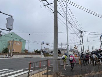 天気が良ければ、遠くの山並みを楽しむことができたと思いますが、今日は風こそ強くないものの小雪舞う空模様となり、山の方を見ると本格的な降雪を思わせるガスが覆っていました。このような厳しい天候にも関わらず、アクシデントも無く無事に終了できたことを喜ぶとともに、参加していただいた皆さんと寒い中歩かずに任務を果たしたスタッフ諸氏に感謝したいと思います。